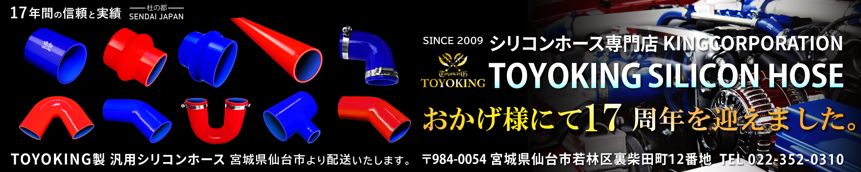 国内シリコンホースメーカーとして17年もシリコンホース一本で勝負している専門店。 長年の実績が、製品の安定したクオリティに直結しています。